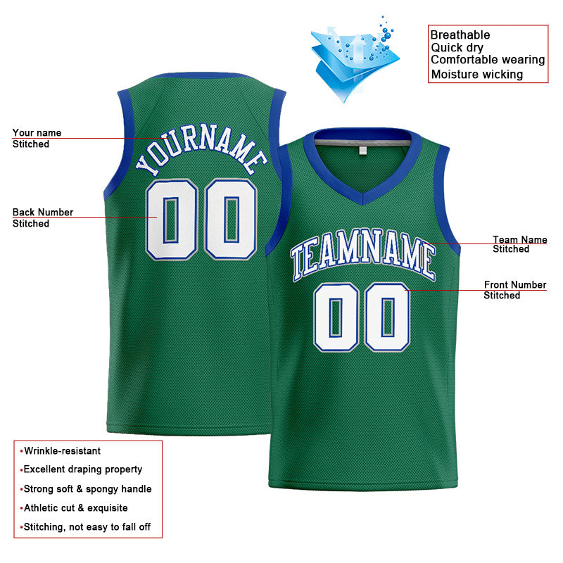 Benutzerdefinierte Authentisch Basketball Trikot Kelly Grün-Weiß-Royal