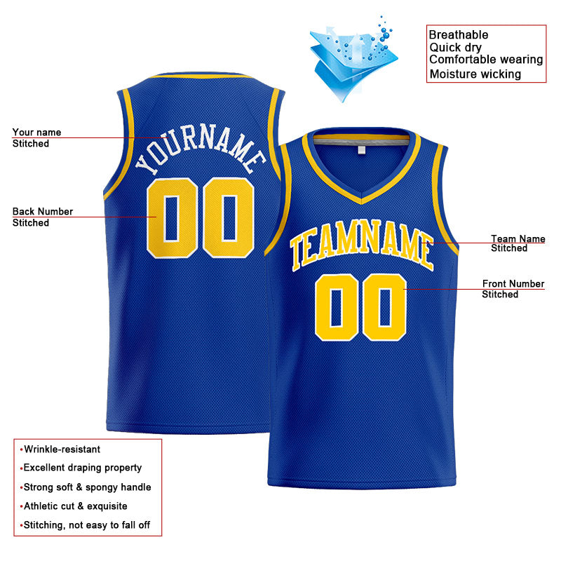 Benutzerdefinierte Authentisch Basketball Trikot Königlich- Gelb- Weiß