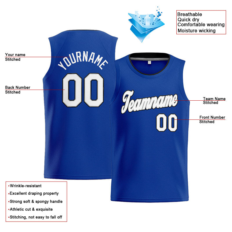 Benutzerdefinierte Authentisch Basketball Trikot Königlich- Weiß-Grau-Schwarz