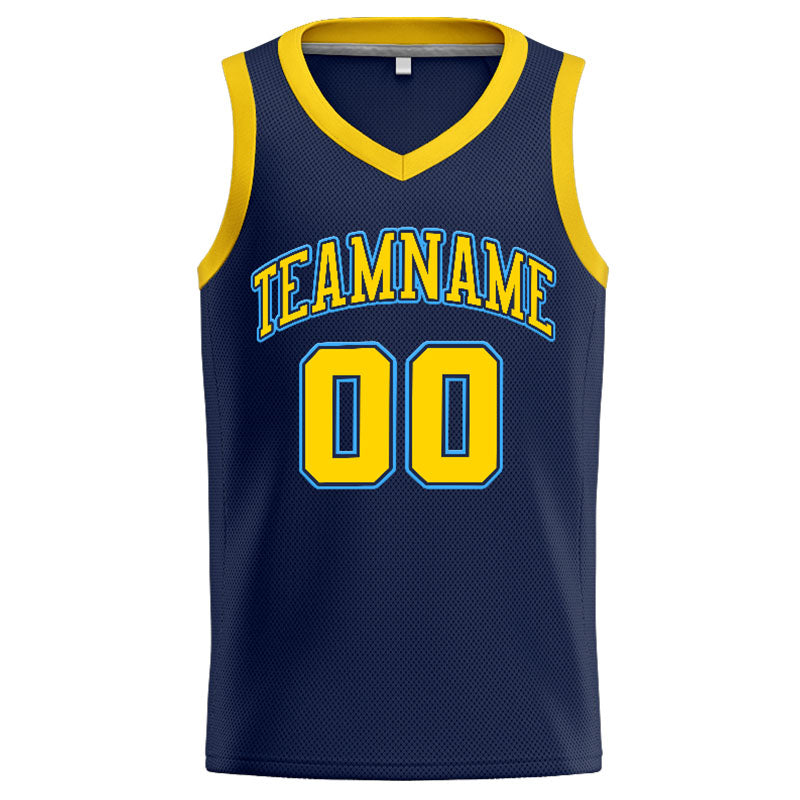 Benutzerdefinierte Authentisch Basketball Trikot Marine-Gelb-Hellblau