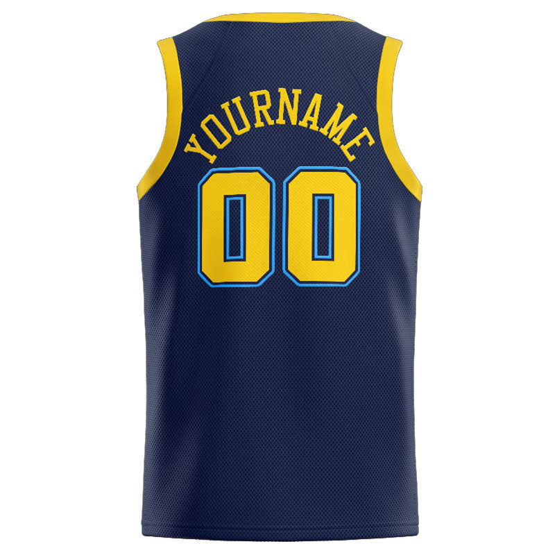Benutzerdefinierte Authentisch  Basketball Trikot Marine-Gelb-Hellblau