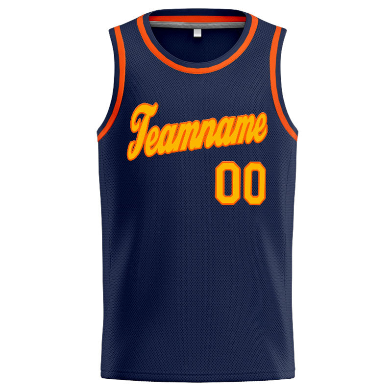 Benutzerdefinierte Authentisch Basketball Trikot Marine-Gelb-Orange