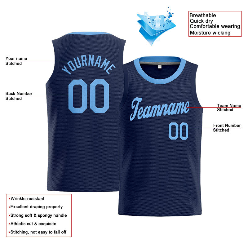 Benutzerdefinierte Authentisch Basketball Trikot Marine- Hellblau