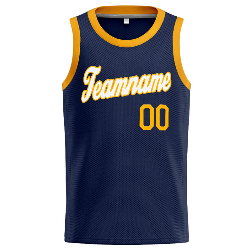 Benutzerdefinierte Authentisch Basketball Trikot Marine-Weiß-Gelb