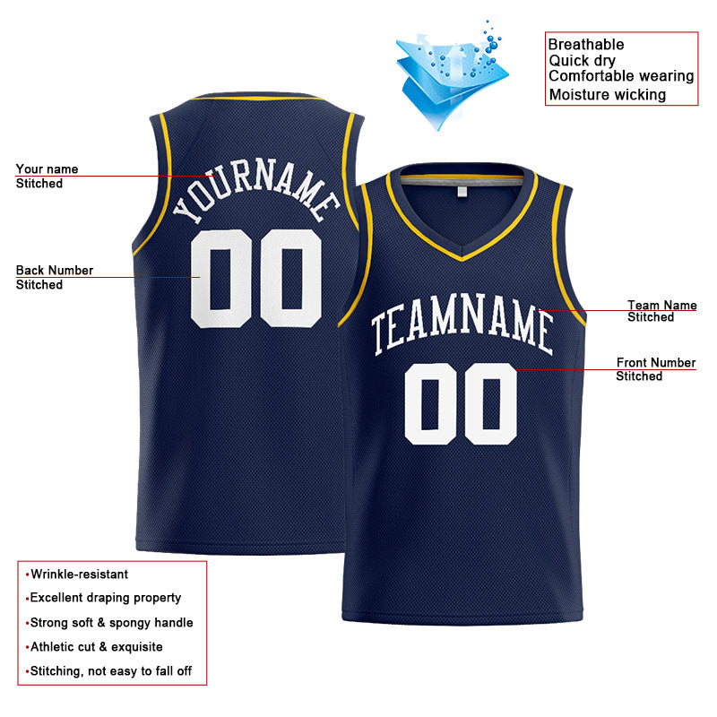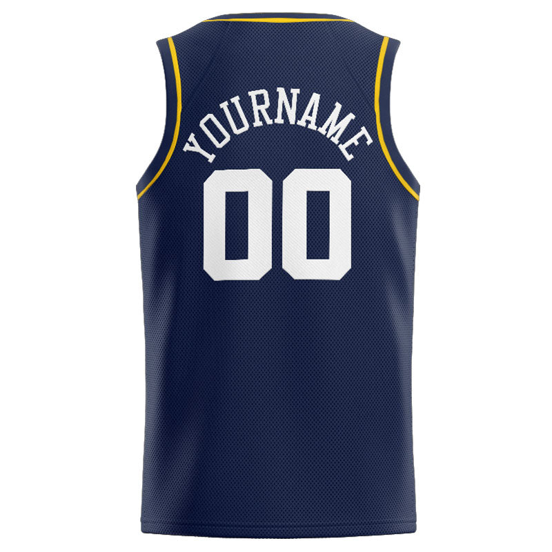Benutzerdefinierte Authentisch Basketball Trikot Marine-Weiß-Gelb
