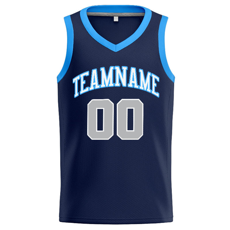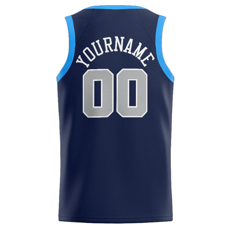Benutzerdefinierte Authentisch Basketball Trikot Marine-Weiß-Grau-Hellblau