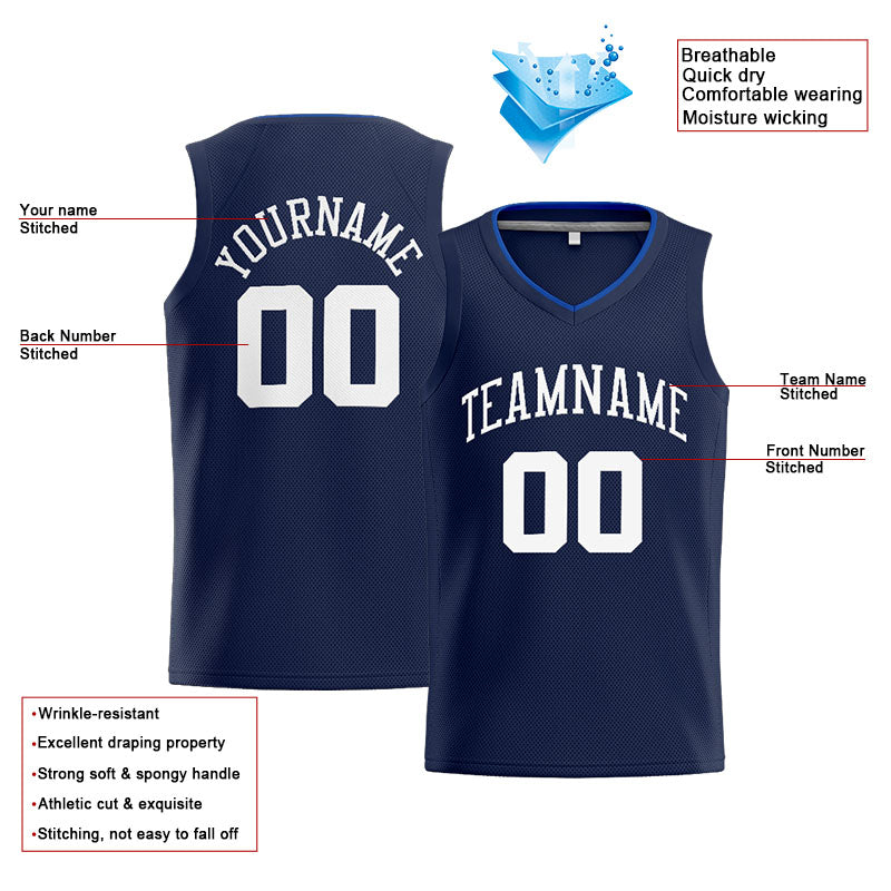 Benutzerdefinierte Authentisch  Basketball Trikot Marine -Weiß- königlich