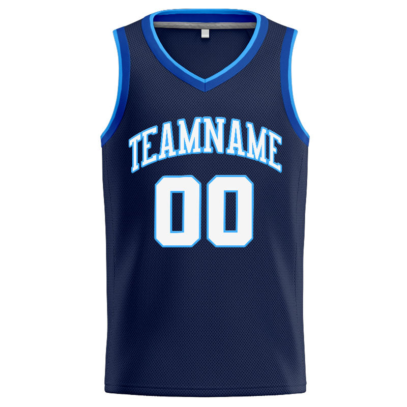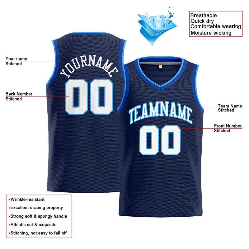 Benutzerdefinierte Authentisch Basketball Trikot Marine- Weiß- Königlich- Hellblau