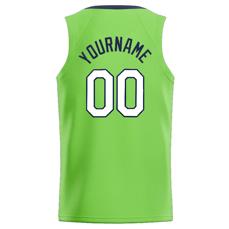Benutzerdefinierte Authentisch Basketball Trikot Neongrün-Marine-Weiß