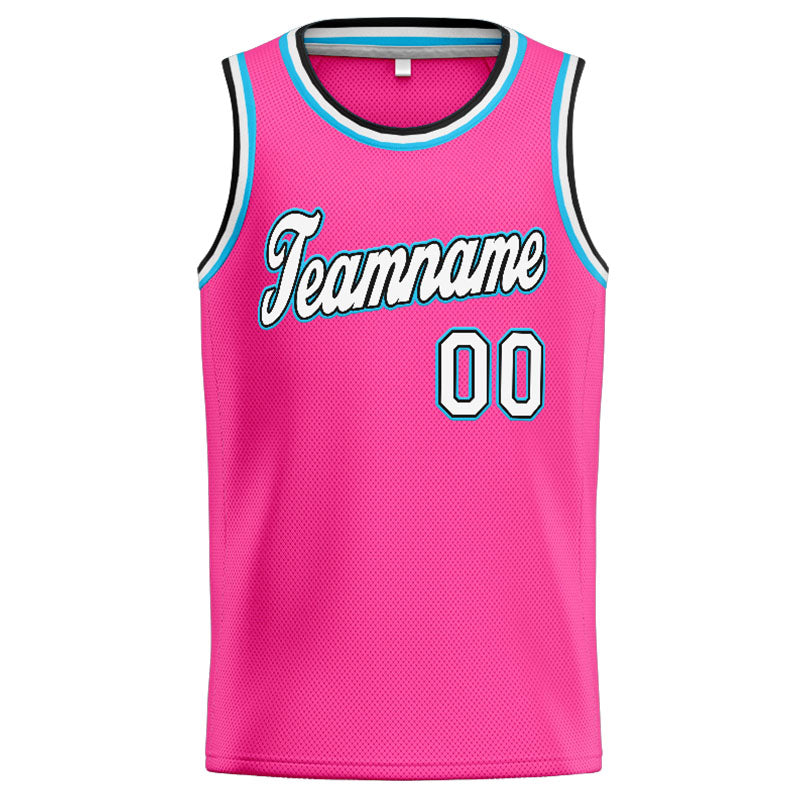 Benutzerdefinierte Authentisch Basketball Trikot Rosa-Weiß-Hellblau