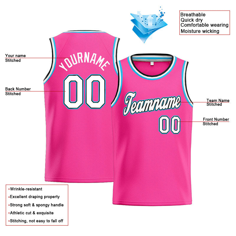 Benutzerdefinierte Authentisch  Basketball Trikot Rosa-Weiß-Hellblau