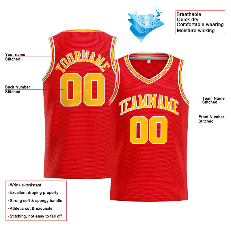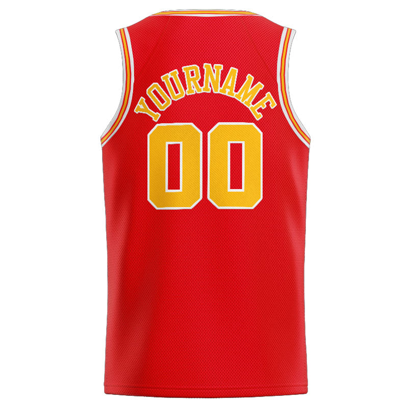 Benutzerdefinierte Authentisch Basketball Trikot Rot-Gelb-Weiß