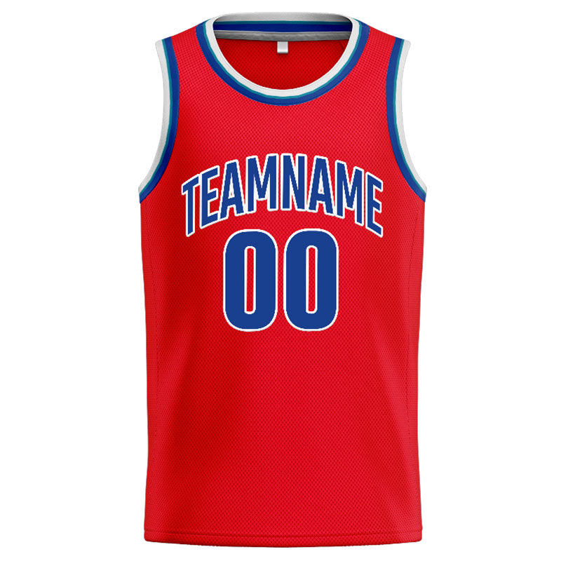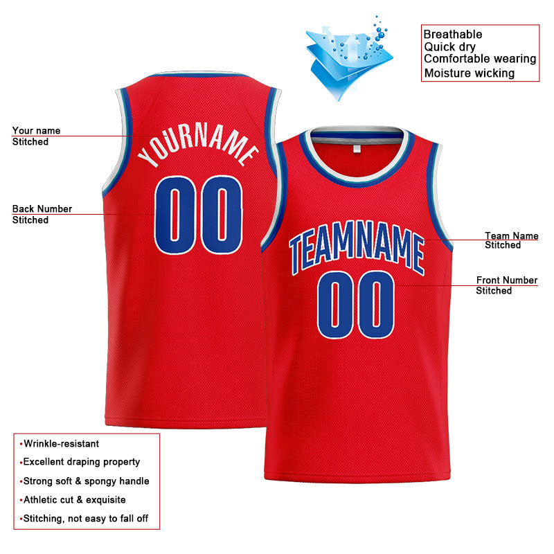 Benutzerdefinierte Authentisch  Basketball Trikot Rot- Königlich- Weiß