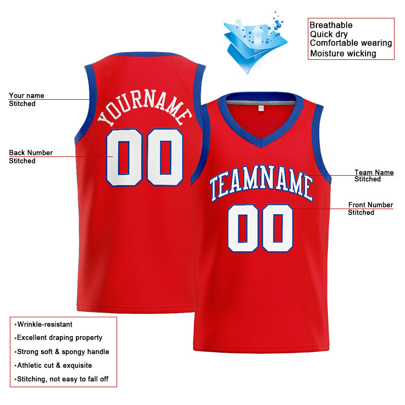 Benutzerdefinierte Authentisch  Basketball Trikot Rot-Royal-Weiß