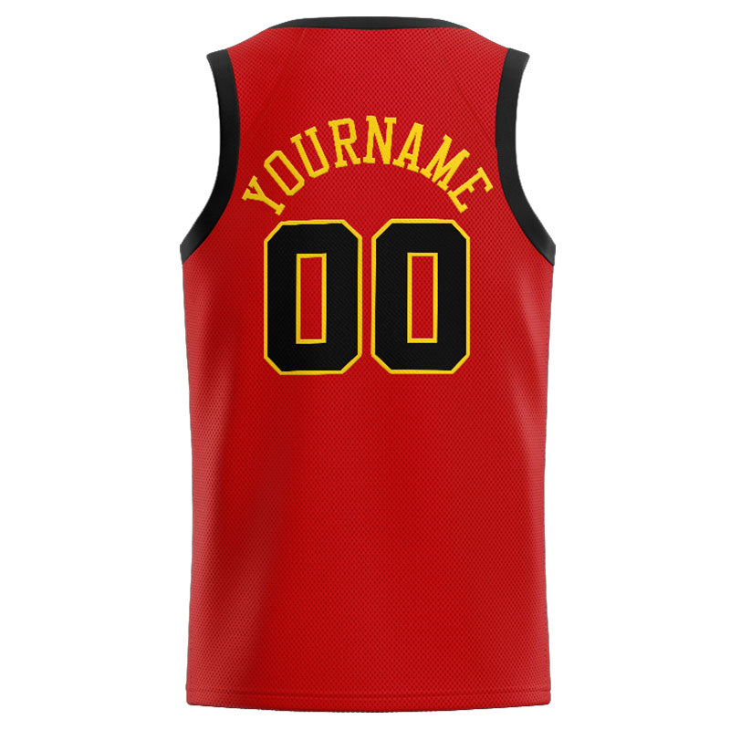 Benutzerdefinierte Authentisch Basketball Trikot Rot-Schwarz-Gelb