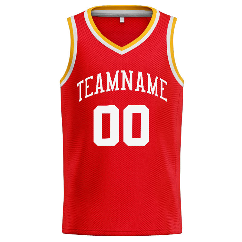 Benutzerdefinierte Authentisch Basketball Trikot Rot-Weiß-Gelb