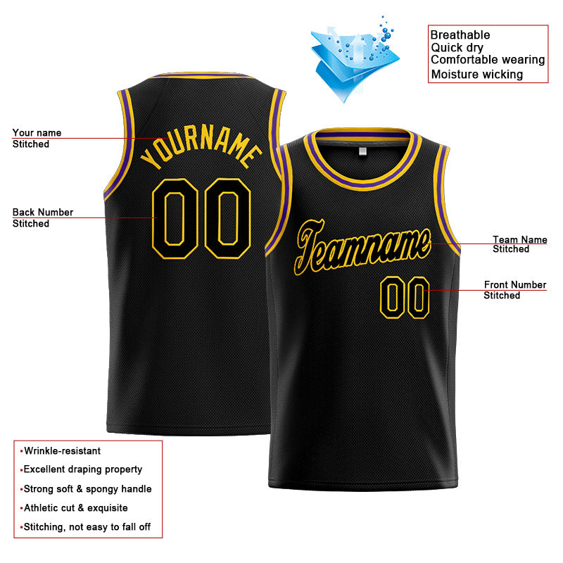 Benutzerdefinierte Authentisch Basketball Trikot Schwarz- Gelb