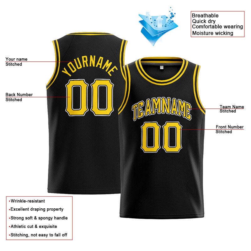 Benutzerdefinierte Authentisch  Basketball Trikot Schwarz-Gelb-Weiß