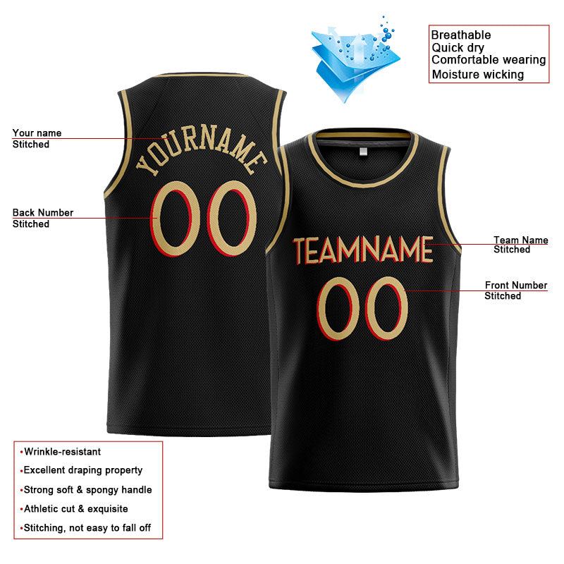 Benutzerdefinierte Authentisch Basketball Trikot Schwarz-Gold-Rot