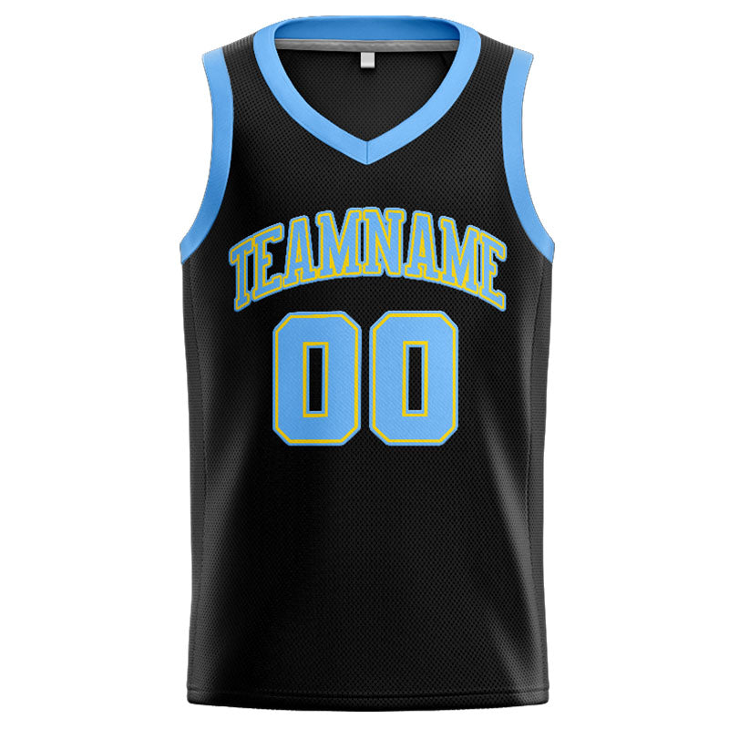 Benutzerdefinierte Authentisch Basketball Trikot Schwarz-Hellblau-Gelb
