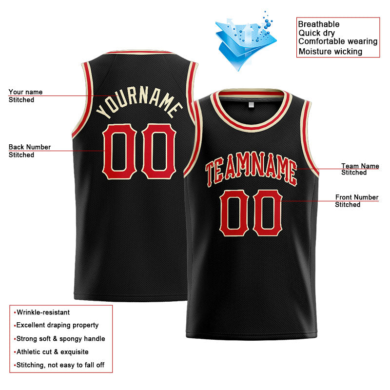 Benutzerdefinierte Authentisch Basketball Trikot Schwarz-Rot-Creme