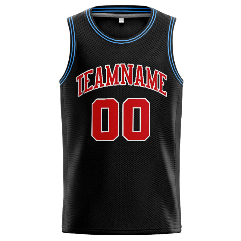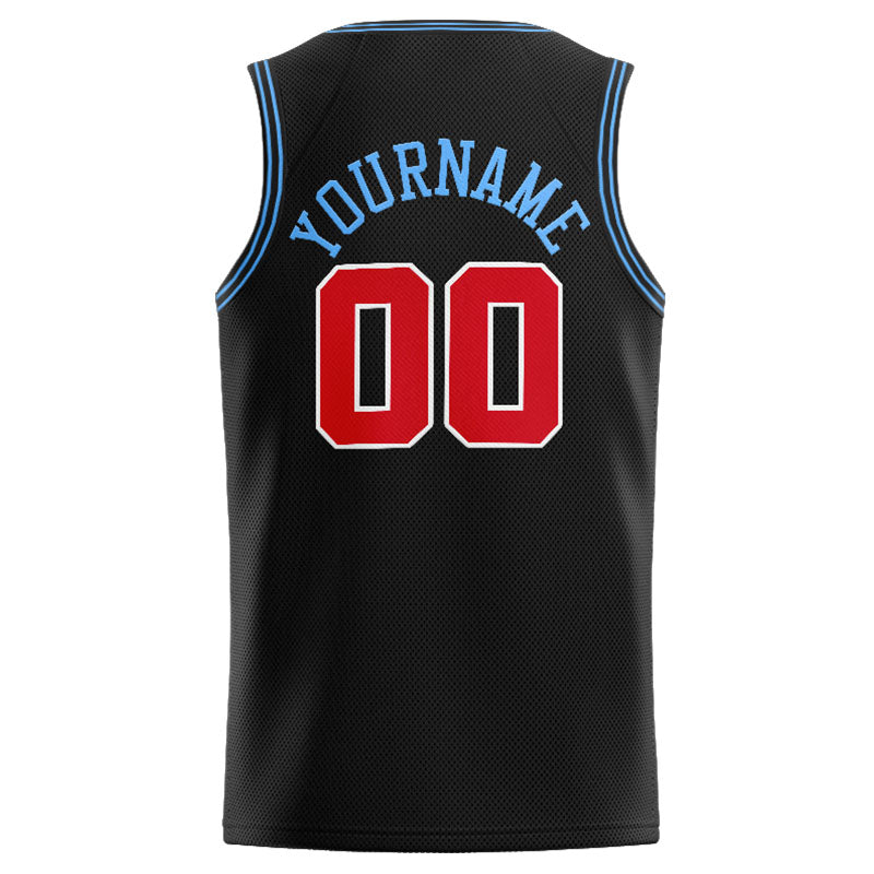 Benutzerdefinierte Authentisch Basketball Trikot Schwarz-Rot-Hellblau