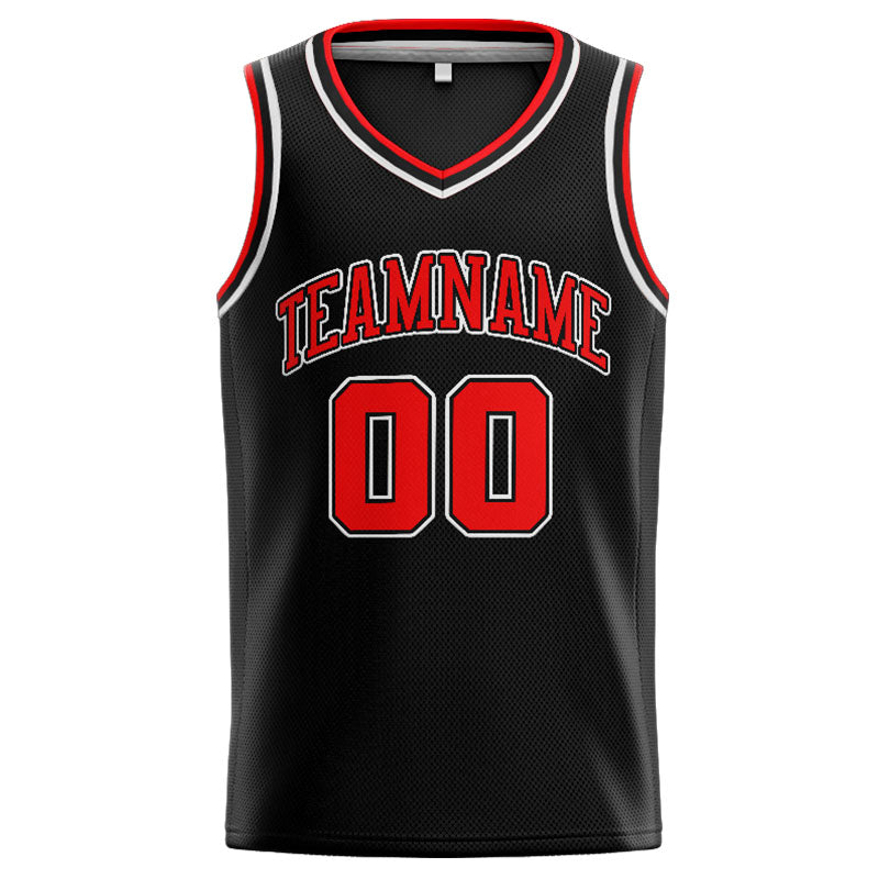 Benutzerdefinierte Authentisch Basketball Trikot Schwarz-Rot-Weiß