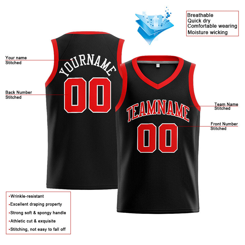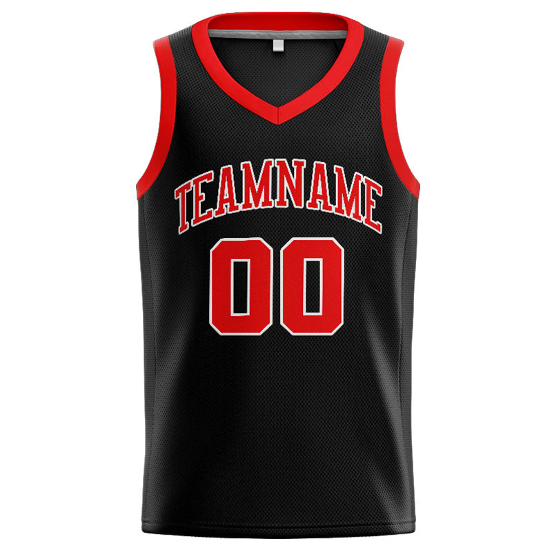 Benutzerdefinierte Authentisch Basketball Trikot Schwarz-Rot-Weiß