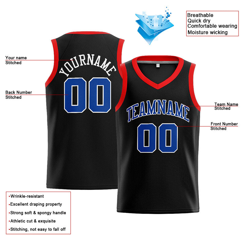 Benutzerdefinierte Authentisch Basketball Trikot Schwarz-Royal-Rot-Weiß