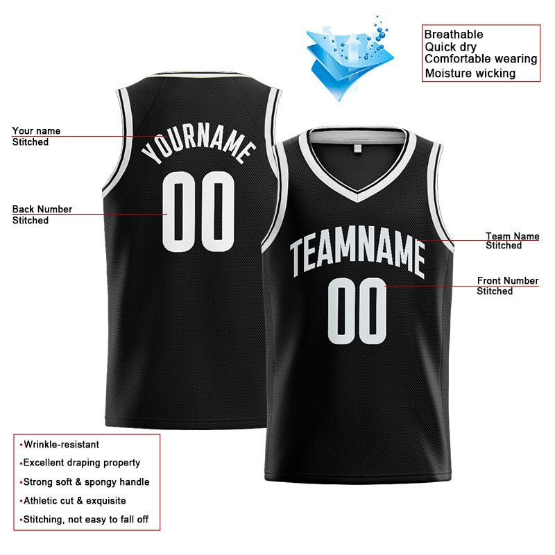 Benutzerdefinierte Authentisch Basketball Trikot Schwarz-Weiss