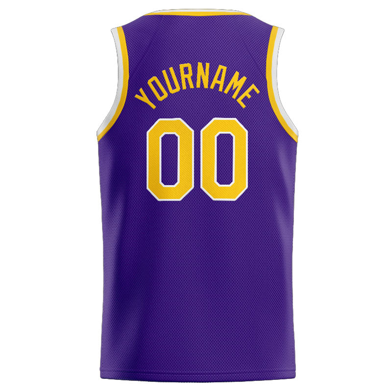 Benutzerdefinierte Authentisch Basketball Trikot Violett- Gelb- Weiß
