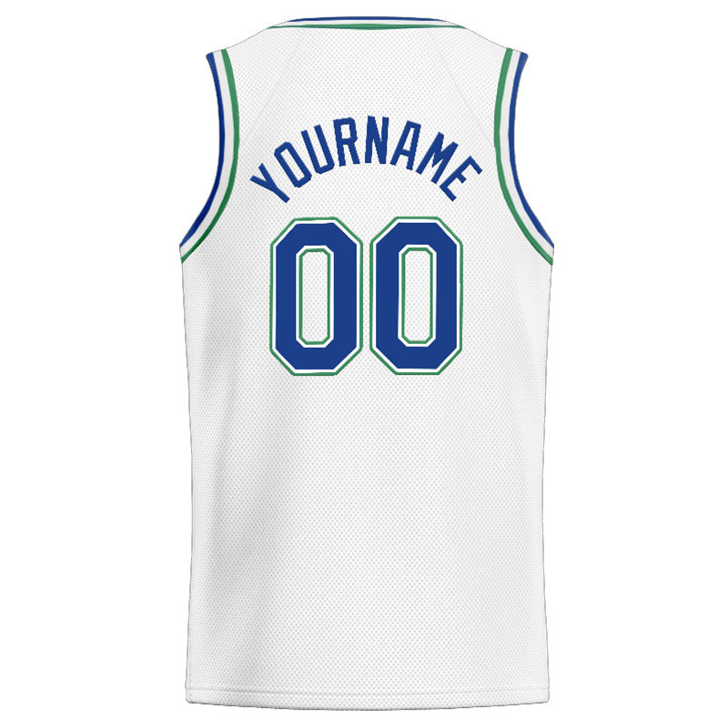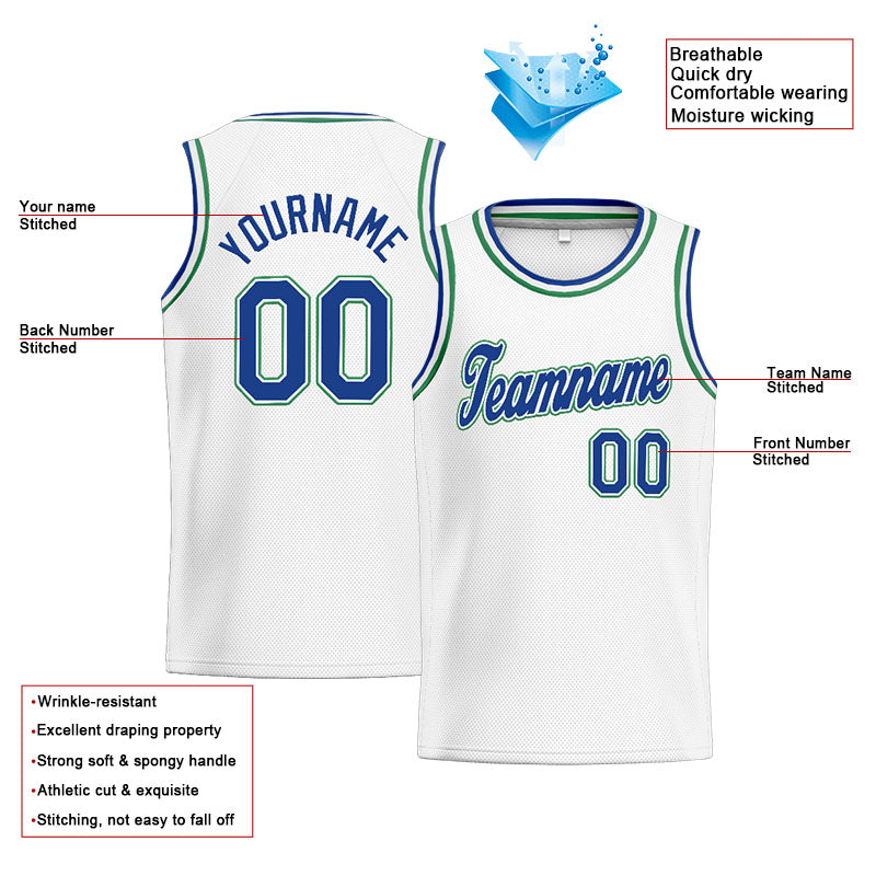 Benutzerdefinierte Authentisch  Basketball Trikot Weiß-Blau-Blaugrün