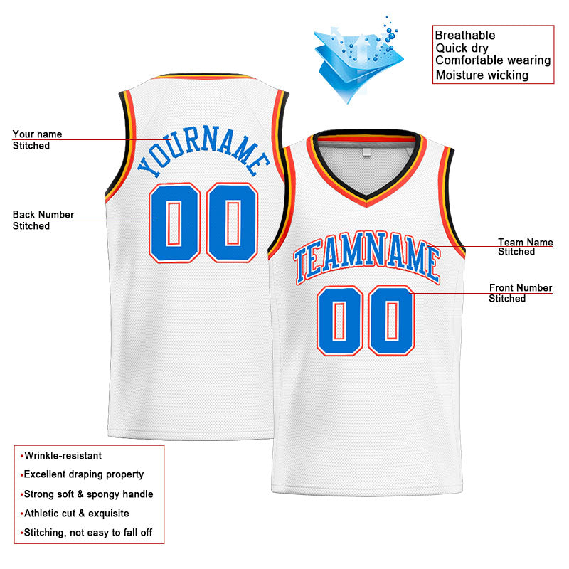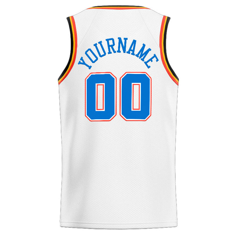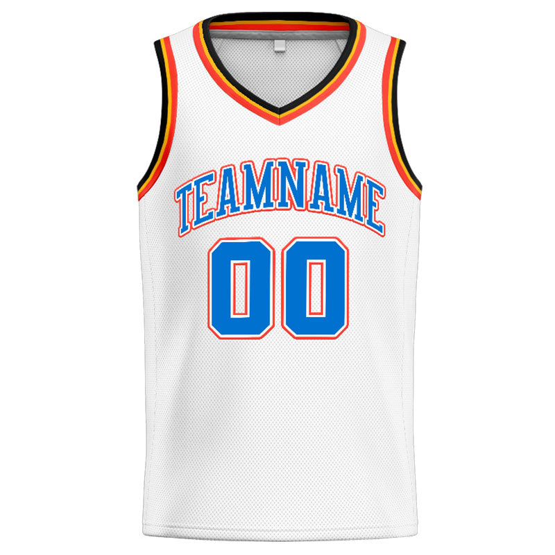 Benutzerdefinierte Authentisch Basketball Trikot Weiß-Blau-Orange-Marine