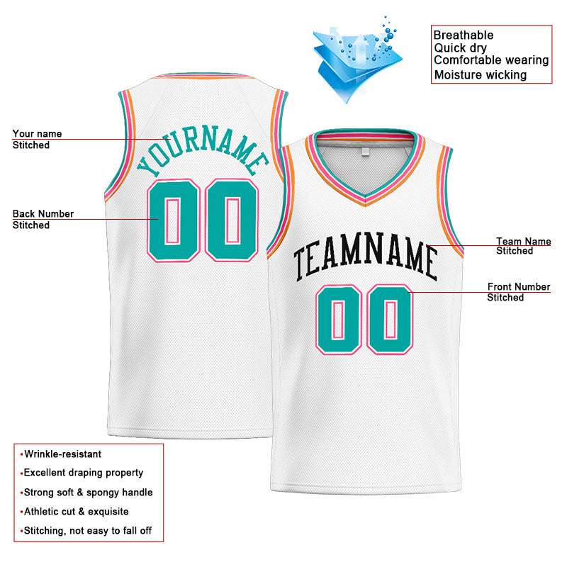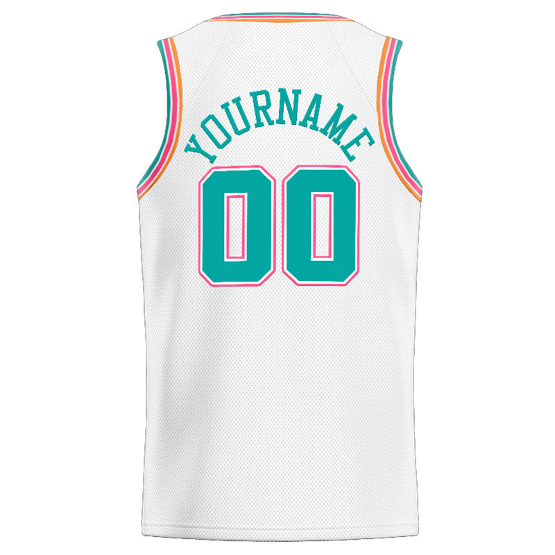 Benutzerdefinierte Authentisch  Basketball Trikot Weiß-Blaugrün