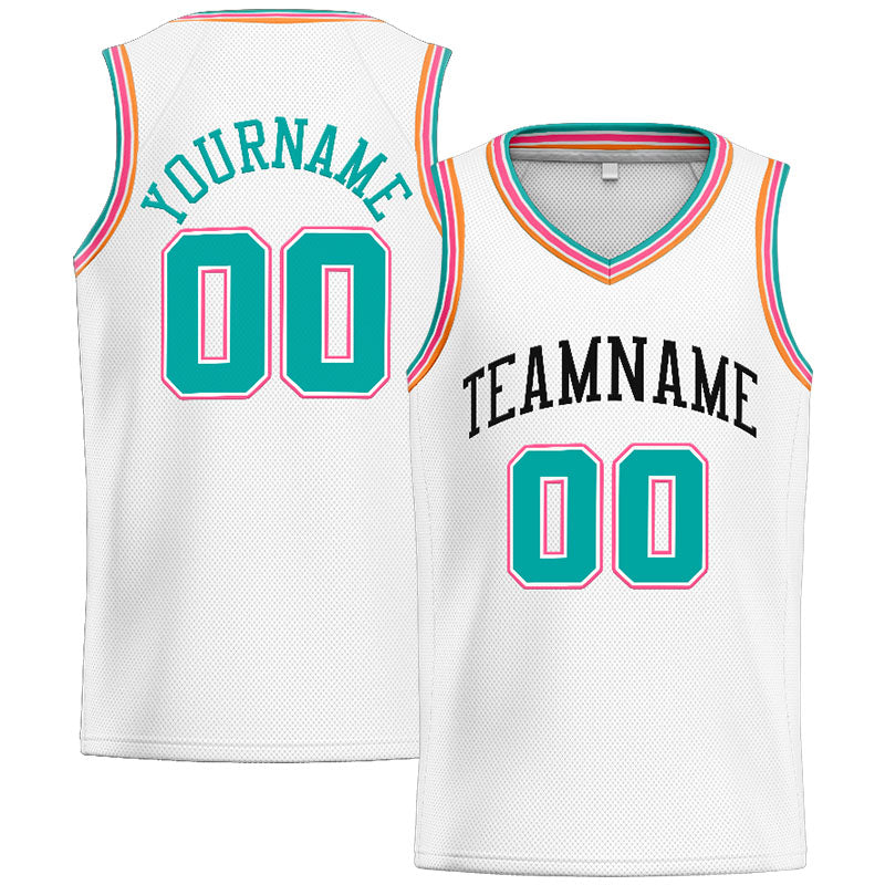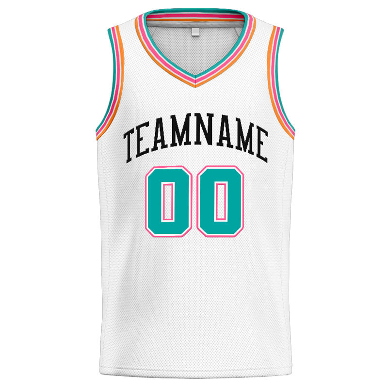Benutzerdefinierte Authentisch Basketball Trikot Weiß-Blaugrün