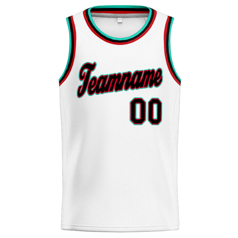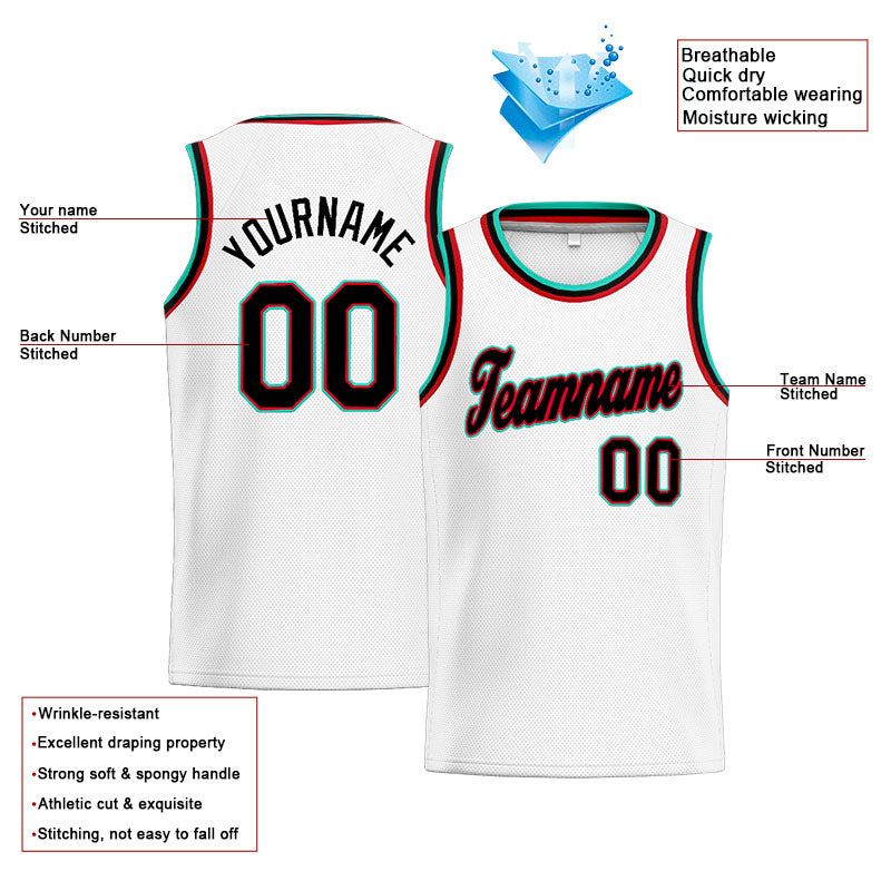Benutzerdefinierte Authentisch Basketball Trikot Weiß-Blaugrün-Schwarz-Rot