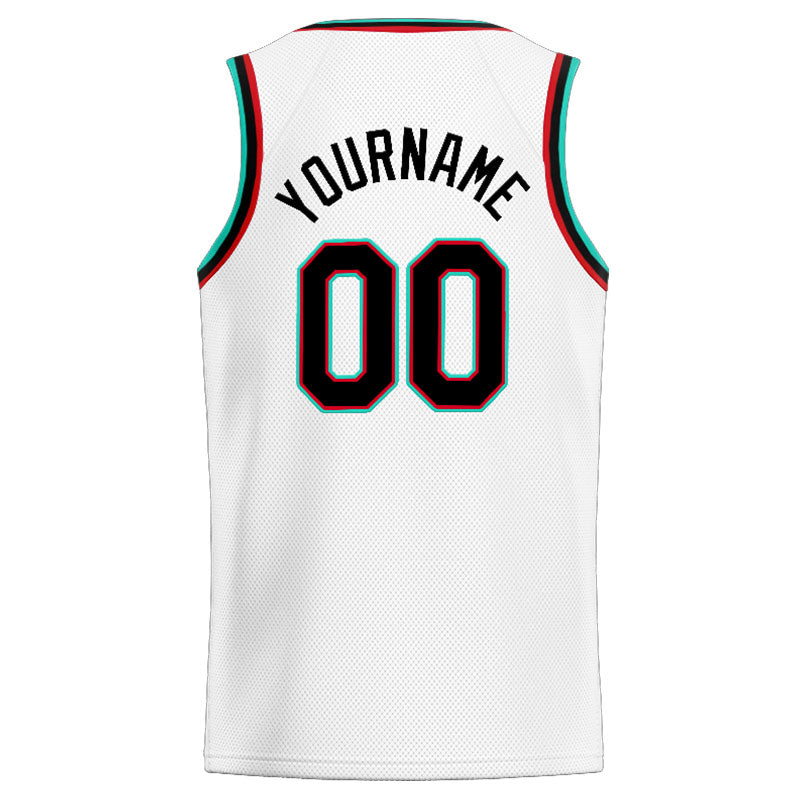 Benutzerdefinierte Authentisch  Basketball Trikot Weiß-Blaugrün-Schwarz-Rot