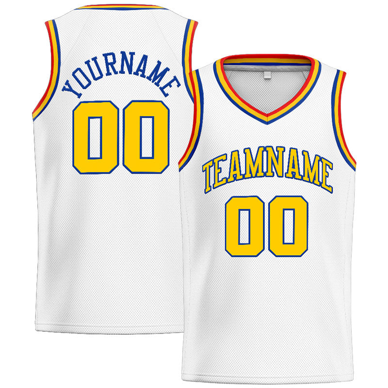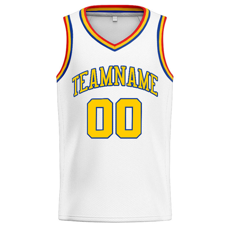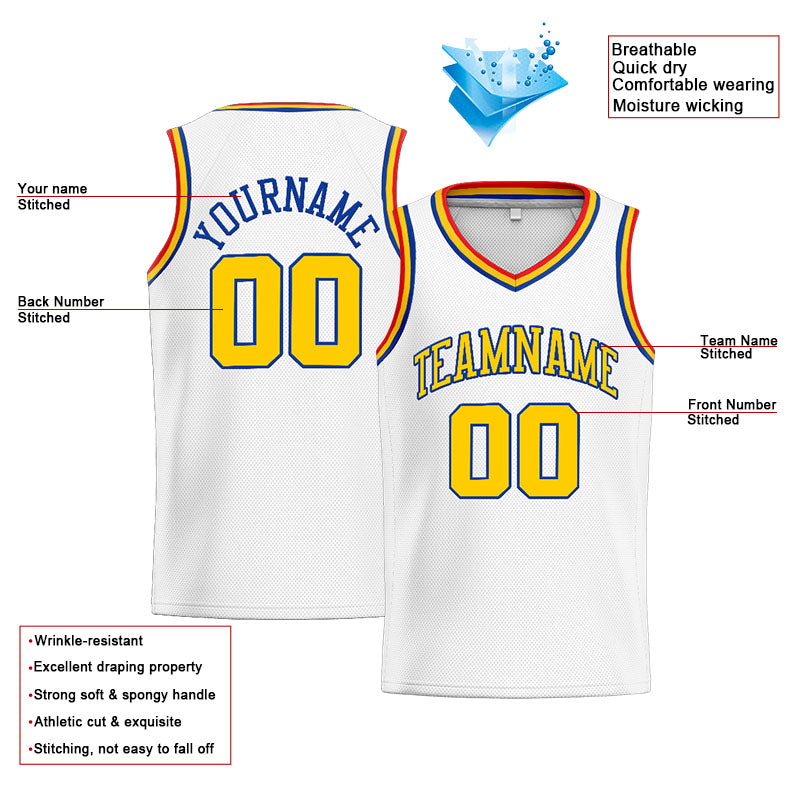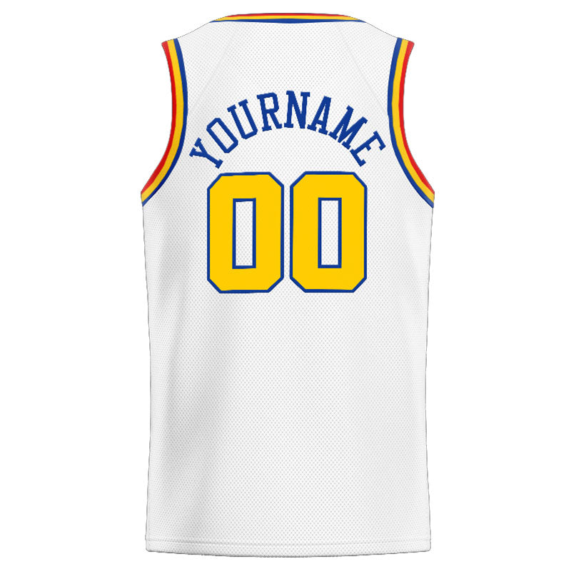 Benutzerdefinierte Authentisch Basketball Trikot Weiß-Gelb-Royal-Rot