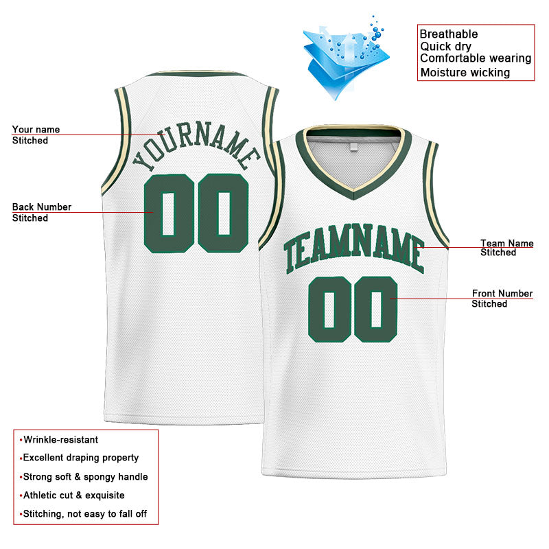 Benutzerdefinierte Authentisch Basketball Trikot Weiß Grün