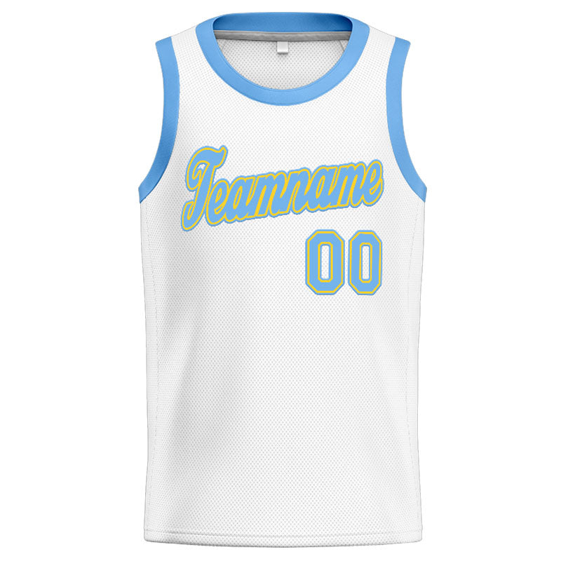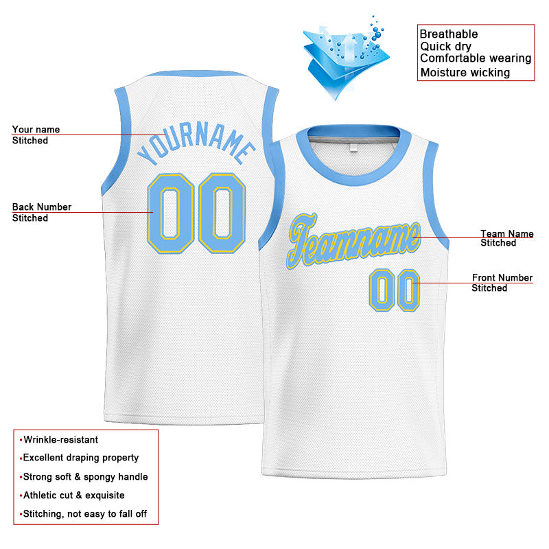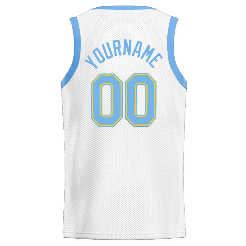 Benutzerdefinierte Authentisch Basketball Trikot Weiß-Hellblau-Gelb