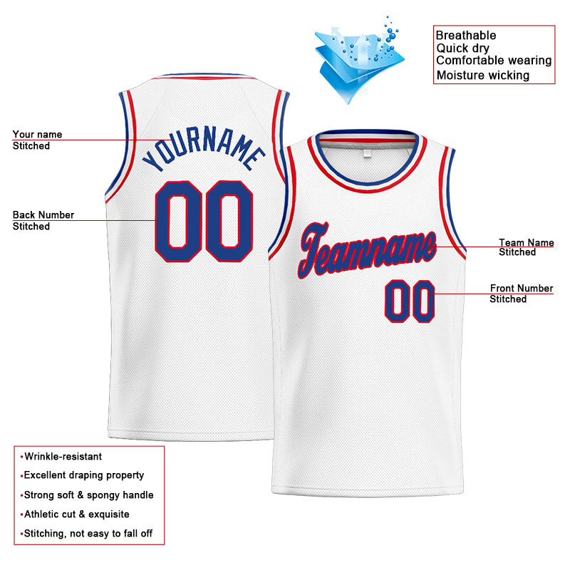 Benutzerdefinierte Authentisch Basketball Trikot Weiß- königlich -Rot