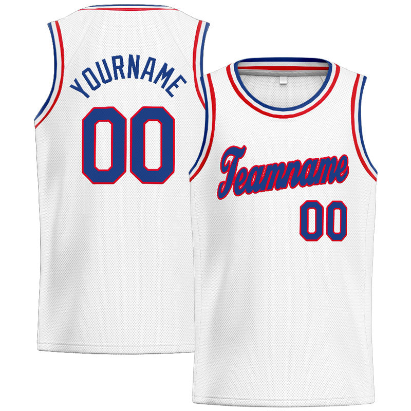 Benutzerdefinierte Authentisch  Basketball Trikot Weiß- königlich -Rot