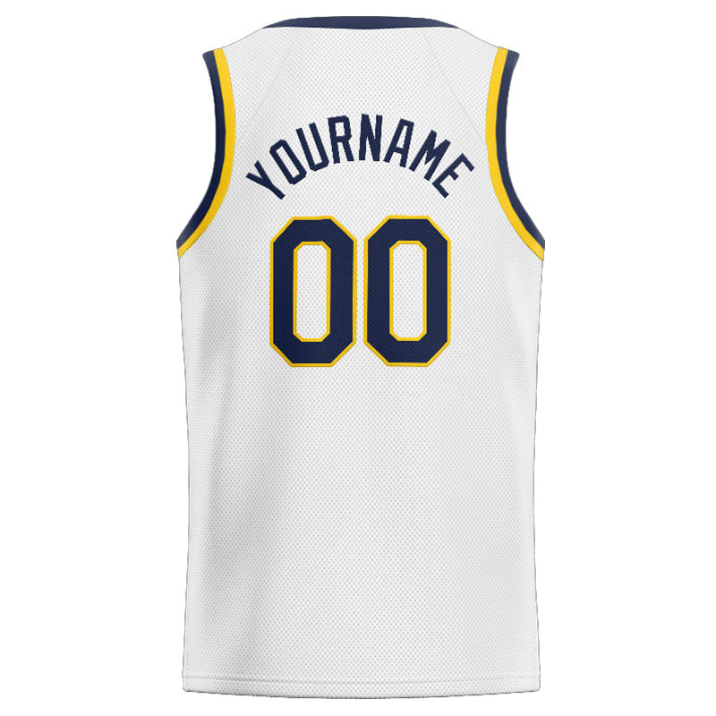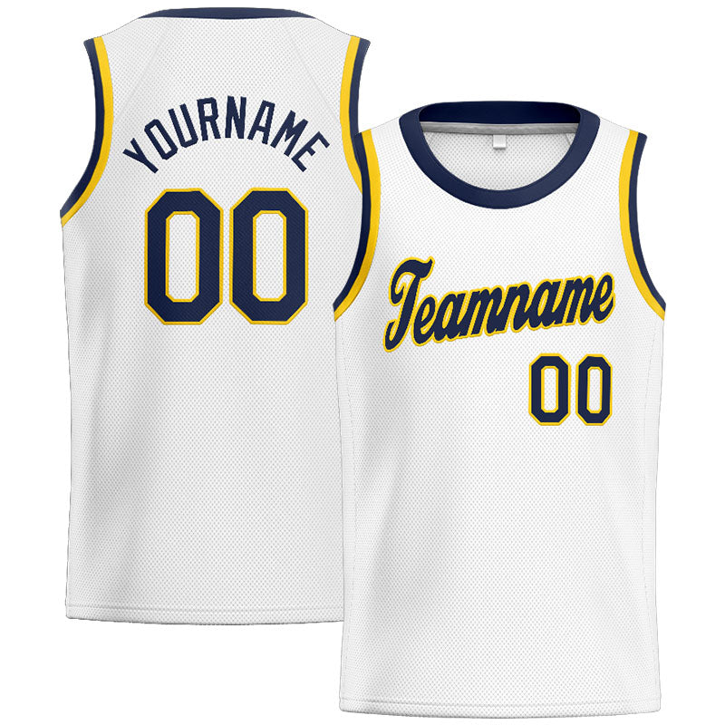 Benutzerdefinierte Authentisch Basketball Trikot Weiß-Marine-Gelb
