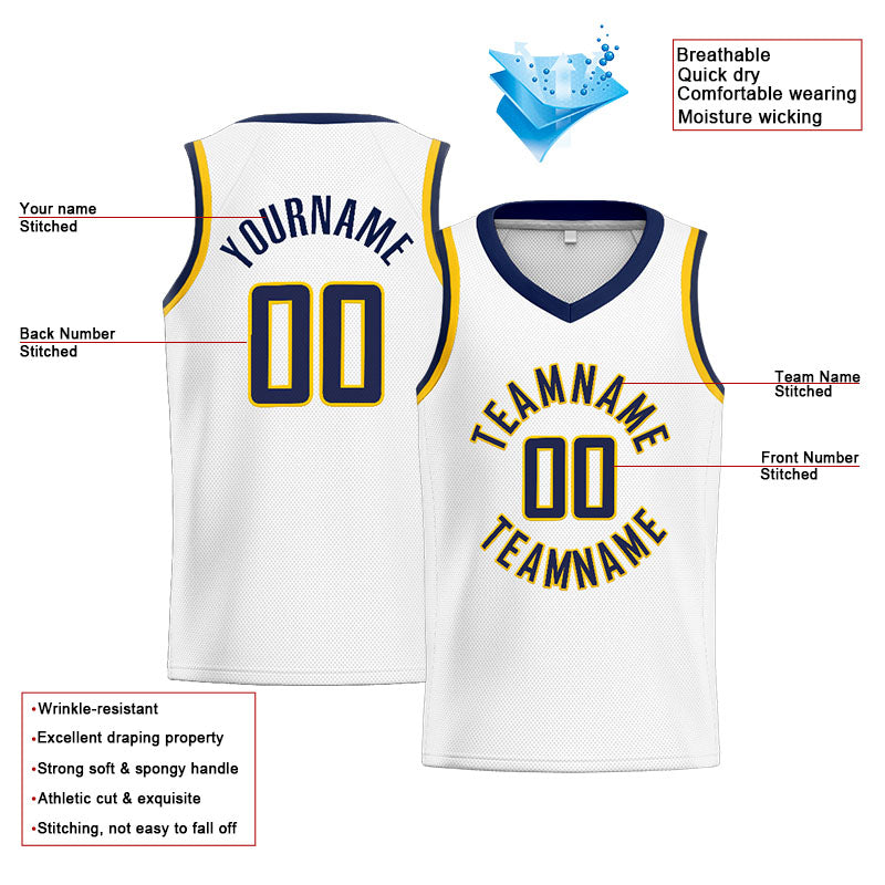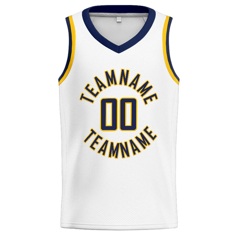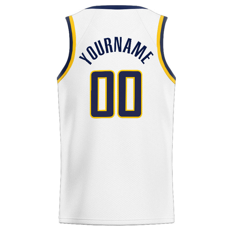 Benutzerdefinierte Authentisch Basketball Trikot Weiß-Marine-Gelb