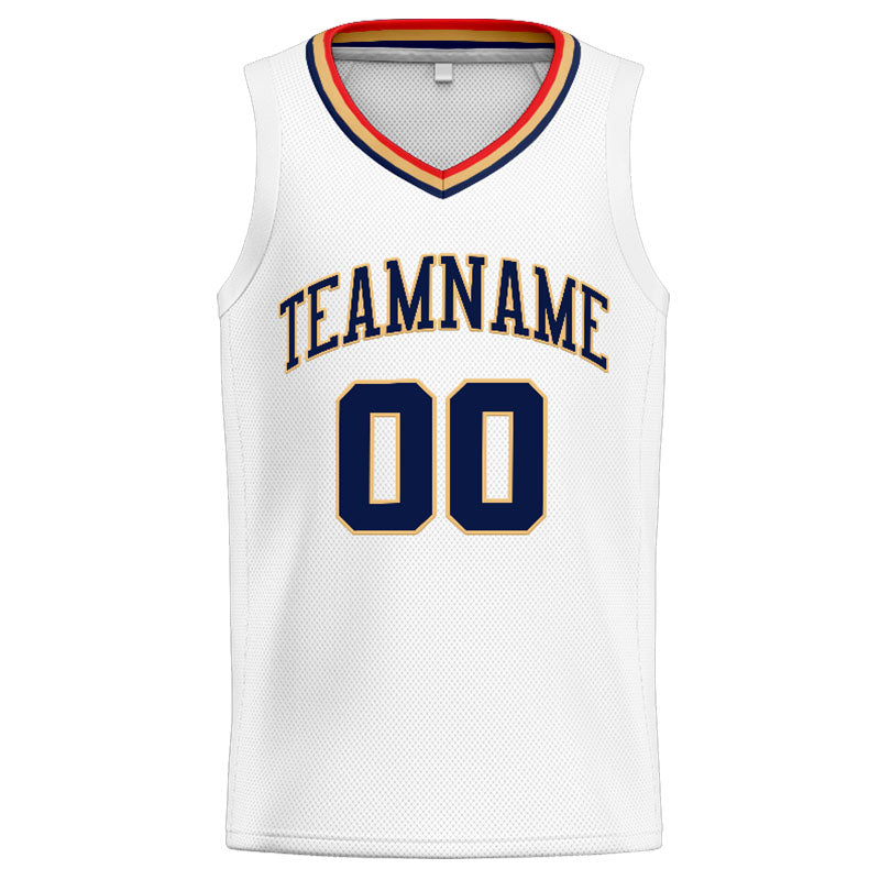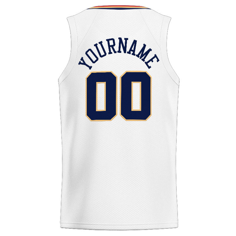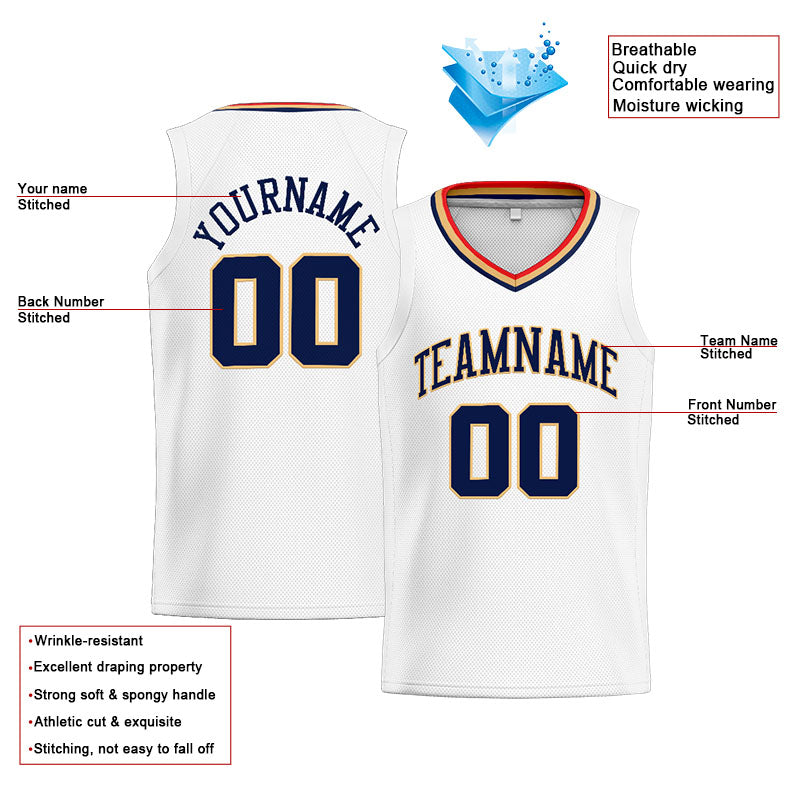 Benutzerdefinierte Authentisch Basketball Trikot Weiß-Marine-Gold-Rot