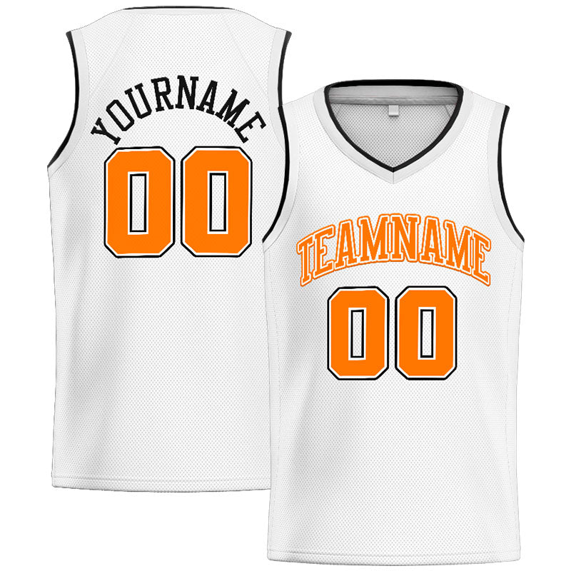 Benutzerdefinierte Authentisch Basketball Trikot Weiß-Orange-Schwarz
