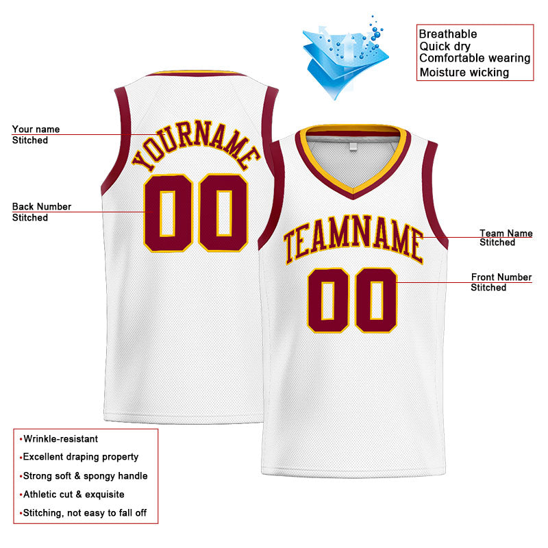 Benutzerdefinierte Authentisch Basketball Trikot Weiß-Purpur-Gelb