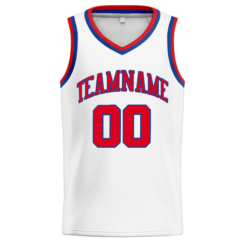 Benutzerdefinierte Authentisch Basketball Trikot Weiß Rot- königlich