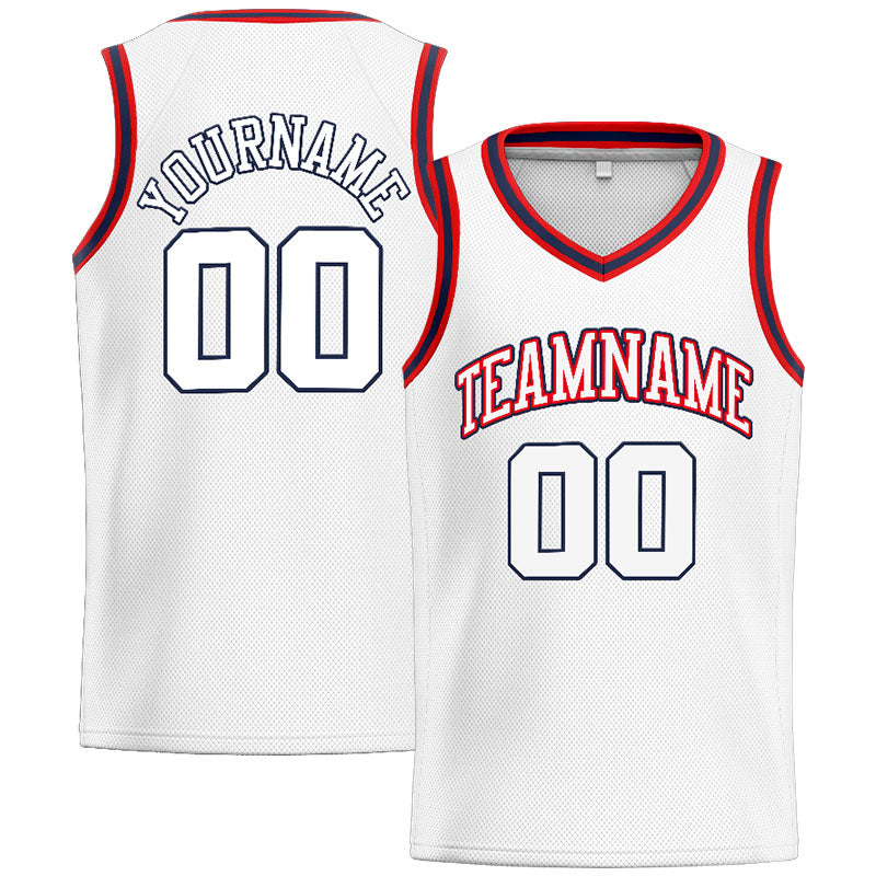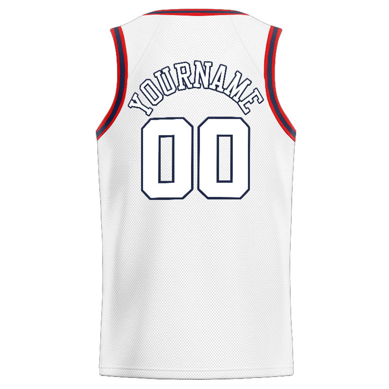 Benutzerdefinierte Authentisch Basketball Trikot Weiß-Rot-Marine