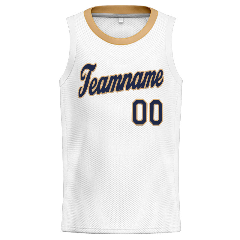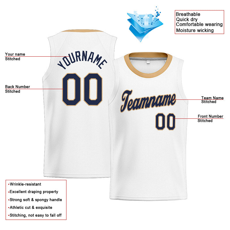 Benutzerdefinierte Authentisch Basketball Trikot Weiß-Schwarz-Gold